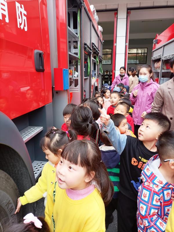 “身穿大红袍,日夜不睡觉,拔通119,马上就来到是什么?”“消防车!”小朋友大声回答,“那消防车是做什么用的?”“救火的!”在这样的互动活动中,老师和小朋友认真听取了消防教员对消防服、防护面罩、灭火器等消防器的认识和使用讲解,体验了穿防护服,观看了消防队员单绳上楼训练表演,参观了消防战士干净整齐的宿舍。